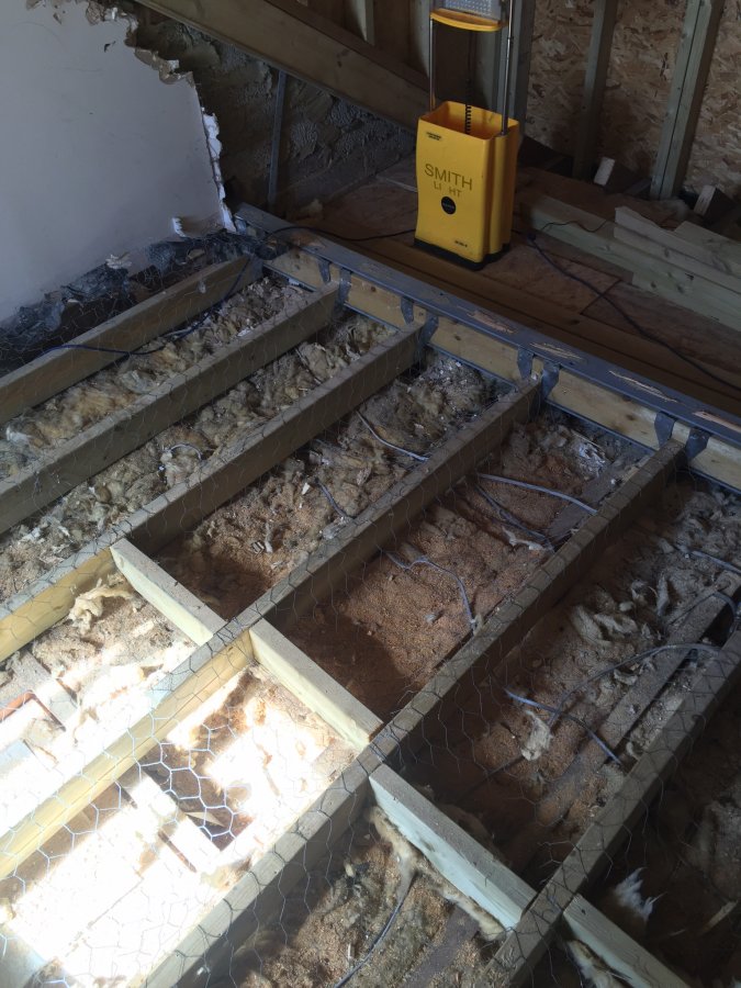 The new floor also needs soundproofing and this is easily achieved by laying a mineral fibre quilt between the joists.